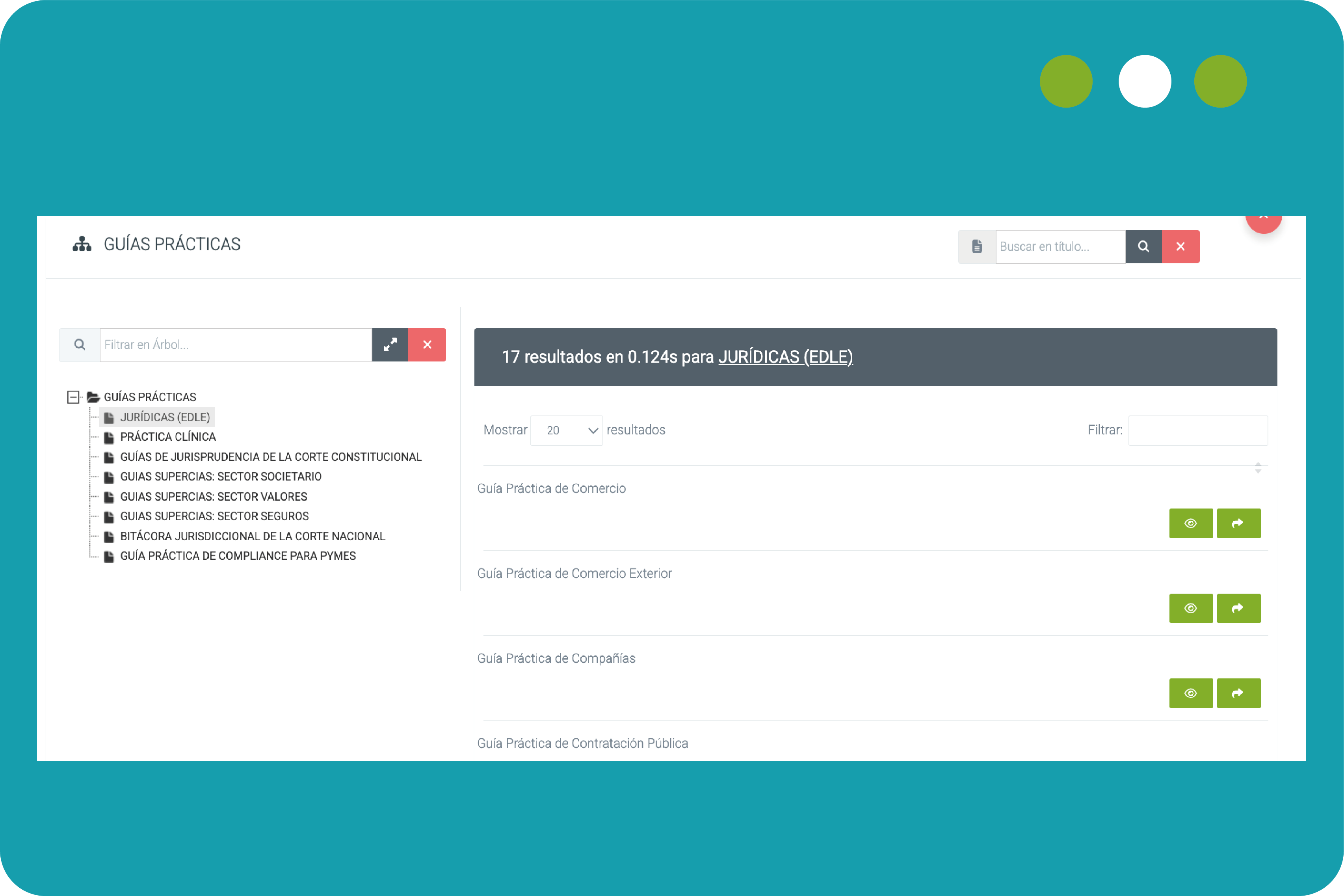 Más de 20 guías prácticas en todas las áreas del derecho además de un repositorio de las guías de práctica clínica del Ministerio de Salud Pública.